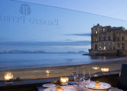 Dinner this evening is in one of Campania’s finest Michelin starred restaurants, at Palazzo Petrucci. You’ll enjoy a tasting menu paired with top Italian wines prepared by Chef Lino Scarallo is one of Southern Italy’s “hot new chefs.” Specialties here include Lasagnetta di mozzarella di bufala e crudo di gamberi; Paccheri ripieni di ricotta con ragù napoletano e grattugiata di ricotta di pecora; Triglia e scarola ripassata; stratificazione di pastiera napoletana.