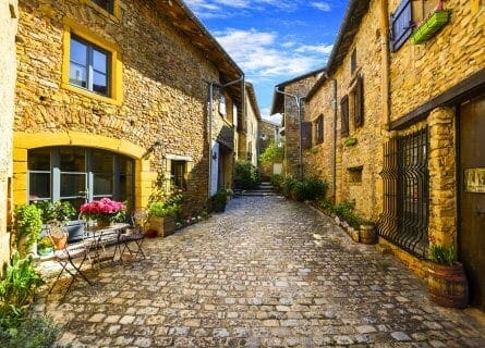 After lunch, it’s a short 5-minute drive to nearby Salles-Arbuissonas-en-Beaujolais, a charming ancient town that dates back to Palaeolithic times. Some beautifully preserved highlights today include the 10th-century Romanesque cloister built by the Cluny Monks and the 11th-century church with its immaculately preserved original door.