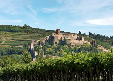 Nevertheless, the most productive and export-orientated zones are found in the hills of Verona, stretching from Soave westwards to Lake Garda. Soave is probably one of Italy’s most popular white wines, made on volcanic soils covered in terraced vine rows, villas, and pergolas. Much stands in the grower’s favor: a benign continental climate (cool winters and warm summers) is supplemented by diurnal temperature variation, which helps to maintain freshness in the grapes. As elsewhere, the top climats (vineyard sites) are planted on poor soils and subject to restrictions regarding the maximum permitted yield. They usually benefit from a south-facing aspect, low soil fertility, and good drainage. Under such conditions, the Garganega grape (regulations allow a small percentage of additional varieties in the blend) will yield structured and powerful white wines characterized by stone fruit, almonds, and vanilla aromas. The region’s unofficial ‘First-Growths’ – Pieropan and Anselmi – have taken to producing a growing volume of single-site wines made from legendary terroirs like Vigneto La Rocca. They represent the apex of Veneto winemaking.